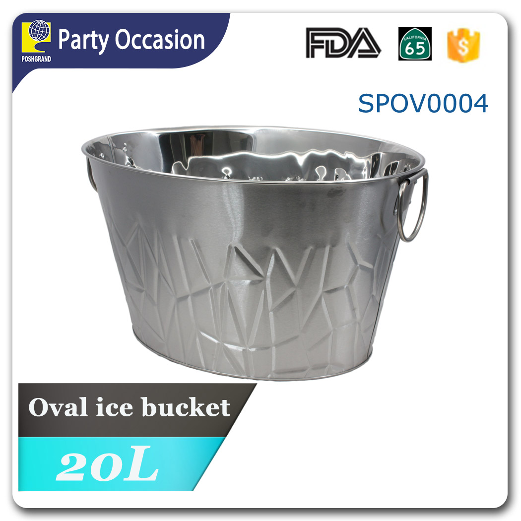 Stainless oval ice bucket with cracking texture